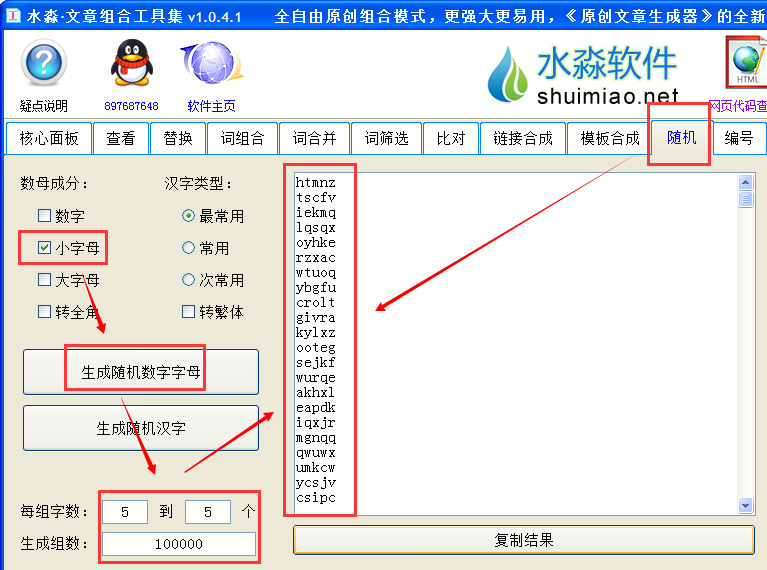 可以使用水淼·文章组合工具集【随机】栏目生成随机数字字母列表,然后使用【词组合】栏目批量组合不同后缀的域名列表。