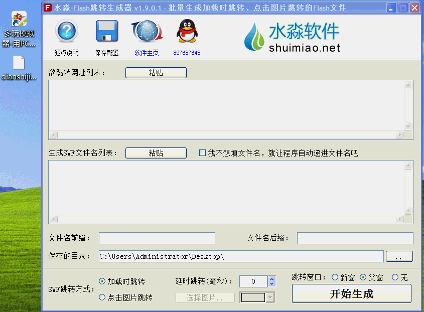 生成能够加载跳转和点击跳转网址的Flash文件(.swf),该文件在被视频播放器如QQ影音和网页浏览器浏览时,将产生跳转到指定网址的行为。