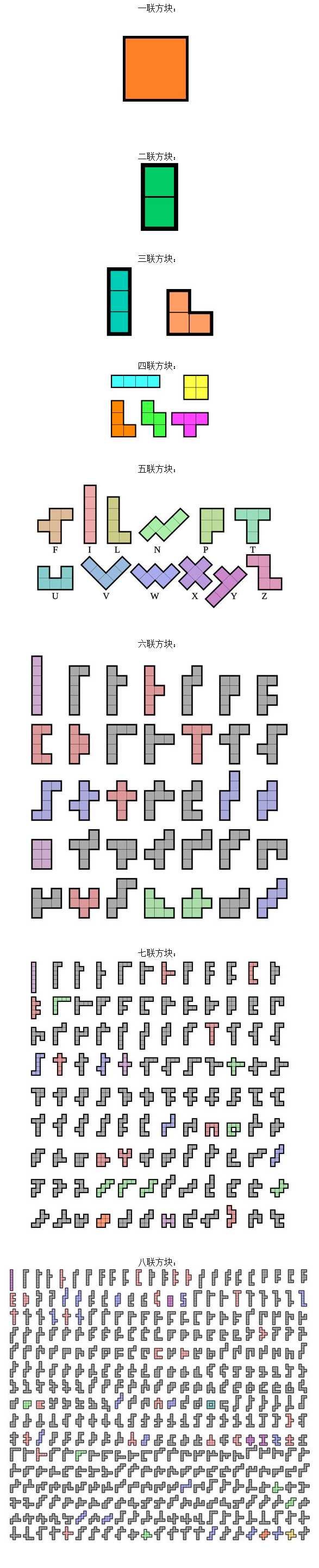 每个形状都是若干个方块的联合。勾选的形状种类将加入出场组,随机竞夺出场。形状种类:一联(1)、二联(1)、三联(2)、四联(5)、五联(12)、六联(35)、七联(108)、小炸弹(1)、中炸弹(1)、大炸弹(1)。括号里的数字是该种类的形状数量。穿透几率